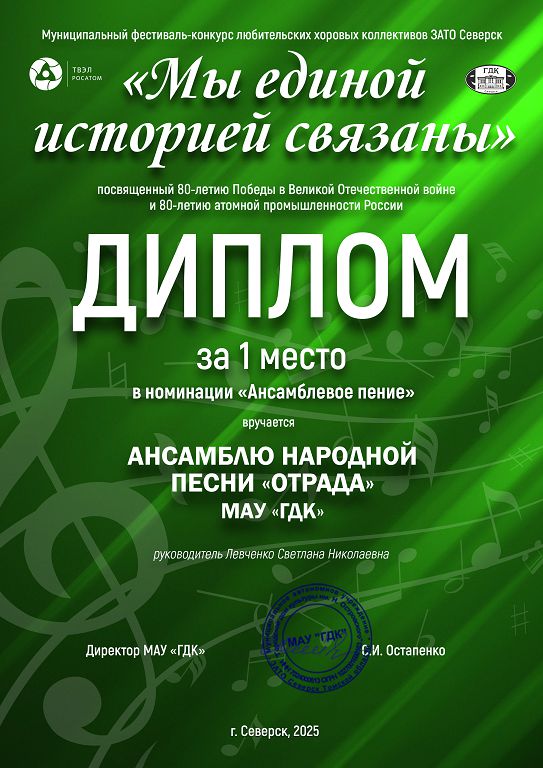 Муниципальный фестиваль-конкурс любительских хоровых коллективов ЗАТО Северск «Мы единой историей связаны», посвященного 80-летию Победы в Великой Отечественной войне и 80-летию атомной промышленности России, 21.09.2025