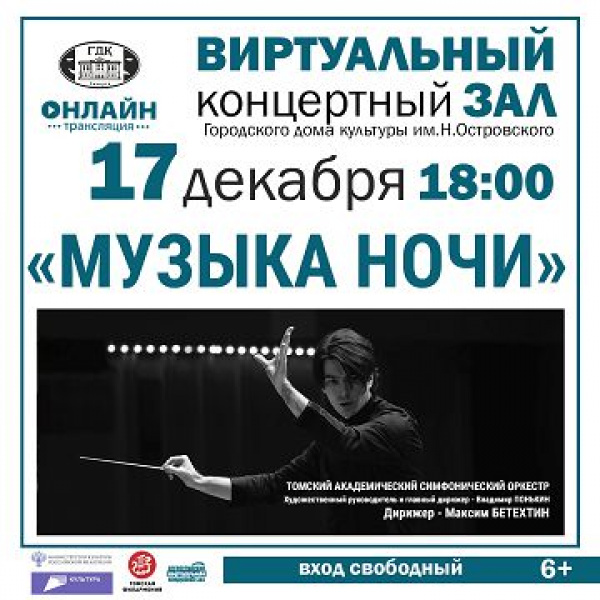 17 декабря в 18:00 в нашем Виртуальном концертном зале состоится трансляция концерта «Музыка ночи» из Органного зала Томской филармонии. Приглашаем северчан пережить вместе остроту чувств, погрузиться в атмосферу ночных кошмаров и прекрасных видений тьмы, мучавших и озарявших великих композиторов прошлого.