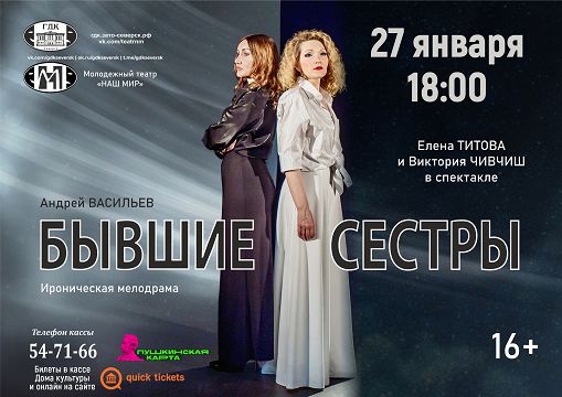 27 января в 18:00 приглашаем на ироническую мелодраму «Бывшие сестры» Молодежного театра «Наш мир».