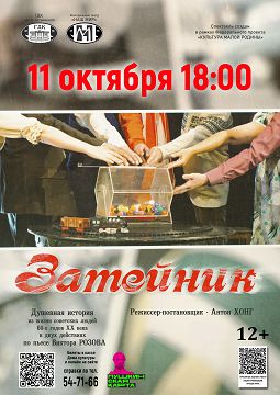 В субботу, 11 октября, в 18:00 в Городском доме культуры им.Н.Островского состоится спектакль «Затейник» (12+) Молодежного театра «Наш мир» по пьесе советского драматурга Виктора Розова. Режиссер – Антон Хонг.