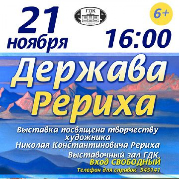 21 ноября в 16:00 в Городском доме культуры им.Н.Островского состоится открытие выставки картин Николая Константиновича Рериха.