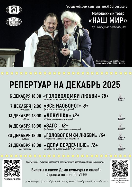 Открыта продажа билетов на спектакли Молодежного театра «Наш мир» в декабре!
